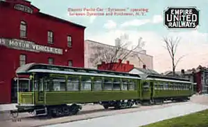 The Empire United Railways was an interurban railway that was owned by Clifford D. Beebe of Syracuse, New York. The Beebe Syndicate controlled interurbans that ran from Rochester to Syracuse, to Auburn to Oswego on Lake Ontario.[1]