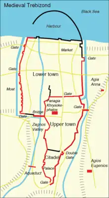 The city of Trebizond was the capital of the theme of Chaldia, which according to the 10th century Arab geographer Abul Feda was regarded as being largely a Lazian port. Chaldia had already shown its separatist tendencies in the 10th and 11th centuries, when it came under the control of a local leader named Theodore Gabras, who according to Anna Comnena regarded Trebizond and its hinterlands "as a prize which had fallen to his own lot" and conducted himself as an independent prince. The Byzantine Emperor Alexios I Komnenos confirmed him as governor of Chaldia, but kept his son at Constantinople as a hostage for his good conduct. Nevertheless, Gabras proved himself a worthy guardian by repelling a Georgian attack on Trebizond.[16] One of his successors, Gregory Taronites, also rebelled with the aid of the Sultan of Cappadocia, but he was defeated and imprisoned, only to be made governor once more.[17] Another successor to Theodore was Constantine Gabras, whom Niketas describes as ruling Trebizond as a tyrant, and whose actions led Emperor John II Komnenos in 1139 to lead an expedition against him. Although that effort came to nothing, this was the last rebel governor known to recorded history prior to the events of 1204.[18]