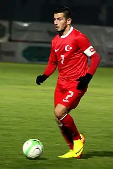 ![]() Başsan playing for Turkey U21 in 2013 | |||