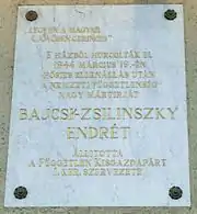 Endre Kálmán Bajcsy-Zsilinszky (Szarvas, June 6, 1886 – Sopronkőhida, December 24, 1944), was an influential Hungarian politician and an important voice in the struggle against German expansion and military policy.