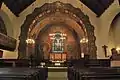 He worked as a decorative painter in Oslo from 1910 onward and had his own studio for stained glass and electric glass making. He founded and headed the School of Norwegian Ornamental Art (Norwegian: Skolen for norsk prydkunst) and was also teacher for some time at the Norwegian National Academy of Craft and Art Industry.[2] In Oslo he carried out many church ornamentation projects, including at Saint Mark's Church, Kampen Church, and Bekkelaget Church—his own parish church. Around 1915 he was commissioned to decorate the Main Building of the Norwegian University of Science and Technology at Gløshaugen in Trondheim. He also decorated private homes in Oslo and Trondheim, but the largest share of his works were frescoes and stained glass in various churches. The decoration of Ålesund Church is considered one of his major accomplishments.[1] The first part of this project, the brown and yellow frieze in the chancel, was completed in 1918. The frescoes on the chancel vault itself and the west wall were executed between 1918 and 1928, and stylistically blend Art Nouveau with Arts and Crafts.[3] In 1938 he started working on the stained glass in the large windows in the church's nave. These were installed in 1946.[4]