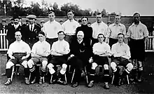 There is a difference of opinion as to whether the England amateur team was effectively the Great Britain Olympic football team at the 1908 and 1912 Olympic football tournaments. The FA's website considers the gold medals in these tournaments a win for the England amateur side rather than a British team,[9] whilst in Bryon Butler's book it is shown that the winners' certificate names England.[10] Conversely, Mark Chapman's England's Amateurs site states that the 1908 and 1912 teams were Great Britain and points to the fact that photographic evidence shows the team playing with the Union flag on their shirts.[11] It can be stated that both arguments are true, as it was the case for the 1956 Olympic tournament where the team played as Great Britain but the team was organised by the FA and consisted solely of amateur Englishmen as the other home nations withdrew their support.[11]