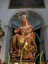Every year during Holy Week the statue is processed along the street, where it is met by a huge paso or float, which has a large depiction of the Crucified Christ resting on top of it. The two images meet, and dance to each other for a brief period—then the Vulnerata comes back to the College. [3]