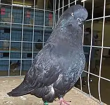 The English Long-faced Tumbler[1] is a breed of fancy pigeon developed over many years of selective breeding.[3] English Long Face Tumblers, along with other varieties of domesticated pigeons, are all descendants from the rock pigeon (Columba livia).