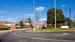 Three years after Enloe opened, Aycock was created on an adjacent campus as a junior high school to educate students in the seventh through ninth grades, taking the place of recently shuttered Hugh Morson Junior High.[8] Enloe became a senior high school with concentrated education for grades ten through twelve. In 1973, Enloe became the first fully integrated high school in Raleigh to hire a black principal.[9] Enloe absorbed the Aycock campus in 1979, becoming a modern high school focused on educating ninth through twelfth grade students. The Aycock building became the East Building, while the original Enloe complex became the West Building.[10]