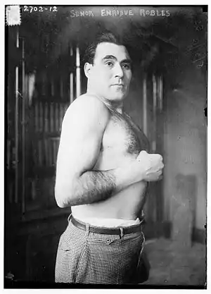 Enrique Robles of Madrid, Spain, also known as Chicorrito was a champion torero in Mexico and in Spain.[1] By 1927 he killed over 1,000 bulls and had 70 scars from being gored.[2]