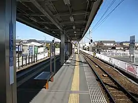 The station has a single island platform, with the station building built onto one end of the platform. The station building has automated ticket machines, and automated turnstiles which accept the NicePass smart card, as well as ET Card, a magnetic card ticketing system. The station is unattended.