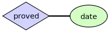 With this notation, relationships cannot have attributes. Where necessary, relationships are promoted to entities in their own right: for example, if it is necessary to capture where and when an artist performed a song, a new entity "performance" is introduced (with attributes reflecting the time and place), and the relationship of an artist to a song becomes an indirect relationship via the performance (artist-performs-performance, performance-features-song).