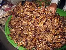 Entomophagy in humans or human entomophagy describes the consumption of insects (entomophagy) by humans in a cultural and biological context. The scientific term used in anthropology, cultural studies, biology and medicine is anthropo-entomophagy.[1] Anthropo-entomophagy does not include the eating of arthropods other than insects such as arachnids and myriapods, which is defined as arachnophagy.
