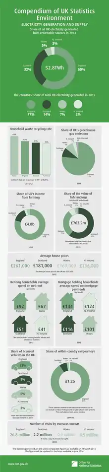 Environmental issues are harmful effects of human activity on the biophysical environment. For the past decade, the state of the environment in the UK has significantly deteriorated both in urban and rural areas. With a population of almost 67 million, such a highly populated and technologically advanced nation grows the environmental suffers. According to the UK NEA, grazing air pollution and the forces of climate change have significantly affected the mountainous regions of the UK.[1] Due to climate change; rising seawater temperatures and exploitation of marine resources led to a serious loss of quality in UK marine ecosystems.[1] Air pollution, climate change, litter, waste, and soil contamination are all a part of the human activity that create these environmental issues in the UK.