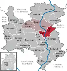 The municipality borders to the north to the town of Oberndorf, to the east to the city of Rosenfeld in Zollernalbkreis, on the south to Dietingen and Villingendorf and on the west to Bösingen.