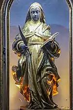 Saint Ephigenia of Ethiopia or Iphigenia of Ethiopia (Spanish: Efigenia; Portuguese: Ifigênia; French: Iphigénie; Greek: Ἰφιγένεια), also called Iphigenia of Abyssinia[6][note 2] (1st century), is a folk saint whose life is told in the Golden Legend[8] as a virgin converted to Christianity and then consecrated to God by St. Matthew the Apostle, who was spreading the Gospel to the region of "Ethiopia," which in this case is understood to be located in the regions south of the Caspian Sea,[9] either in one of the provinces of Mesopotamia (Assyria and Babylon), or in Ancient Armenia (Colchis).[note 3][note 4]