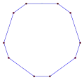 ![]() A skew polygon has equal angles off a plane, like this skew octagon alternating red and blue edges on a cube. |