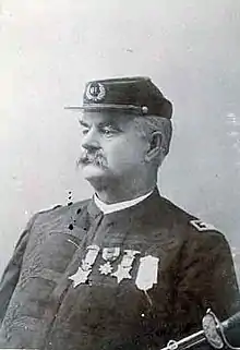 He was awarded the Medal of Honor, his nations' highest military award, for his actions in holding off the enemy during the retreat of the garrison during the Battle of Newport Barracks on February 2, 1864.[5] This award was presented on September 8, 1891.[6]