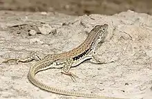 Eremias persica, the Aralo-Caspian racerunner[1] or Persian racerunner,[2] is a species of lizard native to southern Azerbaijan, most of Iran, southern Turkmenistan, Afghanistan, and western Pakistan.[1] Eremias intermedia is also known as the Aralo-Caspian racerunner.