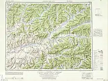 Administratively, Ergun is part of the prefecture-level city of Hulunbuir, and spans 11.4% of Hulunbuir's area.[2][5] It occupies 28,958 square kilometres (11,181 sq mi), bounded to the north and west by the Argun River, which forms China's border with Russia's Zabaykalsky Krai (formerly, Chita Oblast).[2][6] The city's border with Russia spans 675 kilometres (419 mi).[2] Ergun is also bordered by Genhe to the east, and the county-level city of Mohe in Heilongjiang to the northeast.[2]