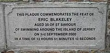 Plaque commemorating Eric Blakeley's round-Island swim of 2000