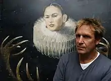 Eric Peters work circles the secrets of the creation and the depths of the human soul, which he aims to explore with the motif repertoire of portrait, landscape and animals. Anchored in the traditions of Symbolism, Dada, Surrealism and the Viennese School in Fantasia realism, he uses several traditions of the history of art. Eric Peters "charms the viewer with the high quality of execution and with the polisemy of the fantastic world of the unusual images. Playing with the human mentality, with our emotions and customary ideas about surrounding life is in the basis of Peters's art."[1] "The circle as a symbol of perfect harmony is found as a compositional basic element of Eric Peters painting in many of his works."[2] The circle refers to the struggle of the artist with the philosophical systems of East Asia. "Eric Peters's images draw the viewer with a fascinating force in a strange spell. The bizarre aesthetics of flawless strange women, animals and mythical creatures touch the human longing for mystery and beauty."[3] The illusion in the area and the sensuality of the paintings arouse the viewer's desire to explore the surface of the images not only with the eyes, but to touch the images, the flawless complexion of the woman faces, the skins of wild cats and the glass and to touch metal surfaces of bowls and jars. Eric Peters is a painter "of consciousness, a visualizer of psychic and psychotic states," writes Alexander Borovsky, head of the department for contemporary art movements of the Russian State Museum (Государственный Русский музей) Saint Petersburg in the catalog of the exhibition Light Games, and explains at the end of his remarks: "Eric Peters found a way that will be needed, since many feel a lack in modern art, a deficit of visual challenge to neo-Baroque, sculptural exuberance, of acrobatic circus tricks, and finally a lack of mystery. Peters' (art) is a kind of antidote for Hermeticism and the rationality of modern art. I think it works."[4] On 30 August 2010 Eckhard Hoog in the Aachener Nachrichten Online reported that Eric Peters "makes splash in Saint Petersburg" and plans a further exhibition in Houston, Texas, next year.[5]