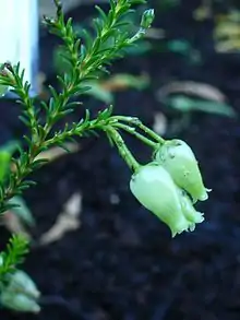 Erica urna-viridis, the sticky heath or bottle-green heath, is a species of Erica that was naturally restricted to the city of Cape Town, South Africa, in particular the Peninsula Sandstone Fynbos of Table Mountain.