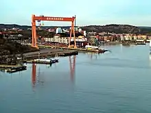 The Eriksberg Crane (Swedish: Eriksbergskranen) is a full gantry crane in the Eriksberg district of Gothenburg, part of the former Eriksberg shipyard. It is a listed building, and is considered to be one of the city's main landmarks and an important relic of its industrial and maritime heritage.