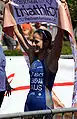 Densham with the gold medal at the Premium European Cup triathlon in Brasschaat, 2010.