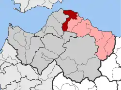 Erineos (Greek: Ερινεός) is a former municipality in Achaea, West Greece, Greece. Since the 2011 local government reform it is part of the municipality Aigialeia, of which it is a municipal unit.[2] The municipal unit has an area of 98.710 km2.[3] Its seat of administration was in the village of Kamares. Erineos stretches between the northeastern slopes of the Panachaiko mountain and the Gulf of Corinth. The river Foinikas (Phoenix) (or Salmenikos) flows through the municipality. The Greek National Road 8A (Patras - Aigio - Corinth) and the railway from Patras to Corinth run through the municipal unit. It is located about 10 km west of Aigio.