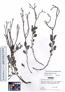Eriogonum nummulare is a species of wild buckwheat known by the common names Kearney's buckwheat and money buckwheat. It is native to the Great Basin of the United States from California to Utah, where it grows on sandy slopes and plateaus.