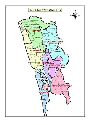 | Assembly Constituencies | Kalamassery Paravur Vypin Kochi Thrippunithura Ernakulam Thrikkakara |