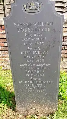 Rear Admiral Ernest William Roberts, OBE (1878–1933) was a rugby union international who represented England from 1901 to 1907.[1] He also captained his country.[1] As a Rear Admiral in the Royal Navy, he served in Grand Fleet destroyers during the Great War.[2] He was appointed an OBE (Military Division) in 1923.[3]