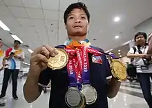 Ernie Gawilan has competed in the Asian Para Games. At the 2014 Asian Para Games in Incheon, South Korea, he won three bronze medals, the most among the Philippine delegation.[4] In the 2018 edition hosted Jakarta, Indonesia, Gawilan won the Philippines' first ever gold medal in the history of the games in the men's 200 meter individual medley SM7. He also won a silver in the 50 meter freestyle S7 event in the same edition.[8]