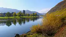 The municipality lies in a bow in the river Moselle only 4 km from Cochem, going towards Trier. Over on the other side of the Moselle lies Valwig. Ernst's municipal area comprises 418 ha, of which 90 ha is vineyards and 227 ha is wooded. Ernst has 617 inhabitants who maintain their main residence in the municipality and another 40 who have a secondary residence there.[3]