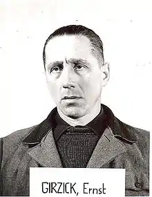 Ernst Adolf Girzick (17 October 1911 in Vienna – date of death unknown) was an Austrian SS-Obersturmführer (1945) and an employee in Referat IV B4 of the Reich Security Main Office (RSHA). Girzick was responsible for the deportation of Jews to concentration and extermination camps and was convicted in Vienna after the war to 15 years in prison.