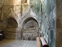 Count Ero was a great benefactor of monasteries. With his second wife Elvira he founded the Monastery of Ferreira de Pallares[1] where he retired while Elvira was still alive. He appears for the last time on 24 September 926 confirming the bride token given by Gunterico Arias to Eros's granddaughter Gontrodo González.[8][7] He probably died shortly afterwards and was buried at the Monastery of Ferreira de Pallares which he had founded.
