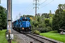 On March 10, 1980, the E&LS formally bought the ex-Milwaukee Road between Ontonagon through Channing south to Iron Mountain.[19] It also obtained a lease-to-own agreement of the tracks south from Iron Mountain to Green Bay; this section was purchased in 1982.[19] Upon purchase, the E&LS immediately began rebuilding its new trackage, which had been neglected by the Milwaukee Road in the years leading up to its bankruptcy.[19] Major funding came from the state of Michigan, which paid $1.6 million (equivalent to $4.3 million in 2020[20]) to install new ties on the track to Ontonagon.[19]