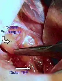 Treatments for the condition vary depending on its severity. The most immediate and effective treatment in the majority of cases is a surgical repair to close the fistula/s and reconnect the two ends of the esophagus to each other. Although this is usually done through an incision between the ribs on right side of the baby, a technique using three small incisions (thoracoscopy) is being used at some centers.