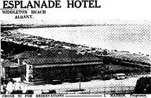 The Esplanade Hotel was a hotel that once stood overlooking Middleton Beach in Albany, Western Australia. The hotel was demolished in January 2007[1] by Singaporean owners, WCP Plaza, to make way for an 81-room hotel, function centre, village square, shops and health and recreation facilities.[2][3] The proposal for the new hotel was approved in 2007 by the City of Albany. The Council also supported the rezoning of several locations in Earl Street and Barry Court to allow the development of the hotel.[4] The site remains vacant in 2015.