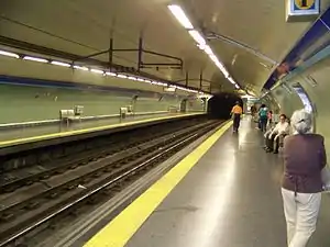 Estación del Arte (formerly Atocha) is a station on Line 1 of the Madrid Metro and is located in Fare Zone A.[1] It was opened to the public on 26 December 1926.[2] The station is located beneath Charles V plaza, less than 500 meters from the Madrid Atocha railway station which serves commuter and long-distance trains. It is the nearest Metro station to the Paseo del Prado. It is located between the neighborhoods of Embajadores (Centro), Jerónimos (Retiro) and Atocha (Arganzuela).