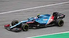 Renault rebranded as Alpine F1 Team for the 2021 season. The team signed two-time world champion Fernando Alonso to partner Ocon after Daniel Ricciardo left for McLaren.[39][40] In the team's first race as Alpine, the Bahrain Grand Prix, Ocon was rear-ended by Sebastian Vettel in the Aston Martin. Ocon finished the race 13th and Vettel later apologised for the incident.[41] Ocon qualified ninth for the Emilia Romagna Grand Prix and was classified ninth in the race ahead of Alonso in tenth,[42][43] earning the team their first points under the Alpine name. This began a run of points finishes; Ocon qualified sixth and finished seventh at the Portuguese Grand Prix before recording two ninth-place finishes at the Spanish and Monaco Grands Prix. His first retirement of the season came at the Azerbaijan Grand Prix with a turbocharger failure.[44]