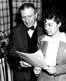 Mauffette began to study drama with Jeanne Maubourg before attempting a career in radio broadcasting.[4] Mauffette's radio career began at the radio program "Pour vous plaire" in 1931.[5] From 1932 to 1933, Mauffette, her brother, and Hector Charland appeared in The Old Storyteller.[6] As she was well liked, she became the first actress to portray the role of Donalda in the show Un homme et son péché by Claude-Henri Grignon.[4] The first episode was aired on September 11, 1939 and ran on Radio-Canada from 1939 to 1962.[7][8] In 1942, she was named Miss Radio.[9] She was also part of the television series La Famille Plouffe.[10]