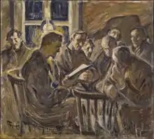 Almqvist belonged to a group of Swedish women artists who traveled, worked, exhibited, and sometimes lived together, including Tora Vega Holmström, Agnes Wieslander, and Maja Fjæstad. In her last year of life, when back pain made it impossible to work, a younger generation of women artists, such as Vera Nilsson, Mollie Faustman, and Siri Derket mounted an exhibition of her work in Stockholm honoring her as an early Swedish modernist. Broader recognition came only after her death in 1934, however.[3] Another exhibit was organized in Lund at the Skånska Konstmuseum a year after she died by a friend Nils Gösta Sandblad.[4] Four years after she died, a retrospective was held at the Galerie Moderne in Brussels. In Almqvist's will she insisted her artwork would be donated to the Malmö Art Museum.[4] Her work is now in the collection of the Swedish National Museum, the Gothenburg Art Museum, the Malmö Art Museum, and other institutions, and she is widely recognized as a pioneer of Expressionism in Sweden.[2][3]
