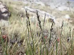 Eelgrass is the dominant plant in barachois, often accompanied by "Enteromorpha intestinalis". The flora of the lagoon also includes sea lettuce, ruppie maritime and swamp zannichellie. The lagoon is bordered, in places, by salt or brackish marshes. The dominant plants in the marshes are Baltic rush, scaly sedge, red fescue, spartina spartina, l'New York aster and the éléocharide uniglume.[gouv 6]
