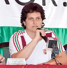 In the summer of 2009 she was appointed as the head coach of the Hungarian women's national team, replacing Vilmos Imre in the position.[5] Mátéfi remained in charge both by her club and the national team until November 2010, when Beáta Bohus took the coaching seat of Békéscsaba to help her to be able to concentrate fully on her international duties.[6] However, during the reign of Mátéfi the Hungarian team slightly underperformed, finishing ninth at the 2009 World Championship and tenth at the 2010 European Championship. Hungary eventually got knocked out by Germany in the 2011 World Championship qualifying play-offs, thereupon Mátéfi resigned in June 2011.[7]