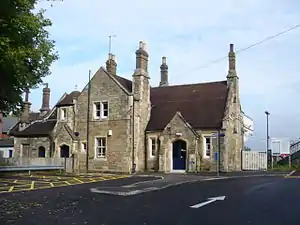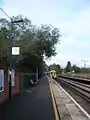 Etchingham station has two platforms linked by a footbridge (with steps on both sides) and a station building housing the ticket office and waiting room. The building dates from 1851, when both the station and the first section of the Hastings line opened, and incorporates sandstone blocks taken from a manor house which stood on the site.[1] Train information is provided in the form of automated announcements, LED displays and timetable posters. Disabled passengers may cross between the platforms using the level crossing to the south of the station.