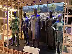 In October 2021, Lexus released a commercial promoting the film and its Lexus IS 500 sports sedan starring Nanjiani as Kingo, with frequent MCU directors Joe and Anthony Russo guiding its development and Framestore working on the visual effects.[94] Lexus created ten concept cars based on the ten Eternals characters from the film.[95] The LS 500h and NX are featured in the film.[94] Beginning on November 20, 2021, select costumes from the film were part of the Futures exhibit at the Smithsonian Institution's Arts and Industries Building, which will run through July 2022. Behind-the-scenes content looking at the evolution of the film's visuals as well as an augmented reality experience were also included in the exhibit.[96]