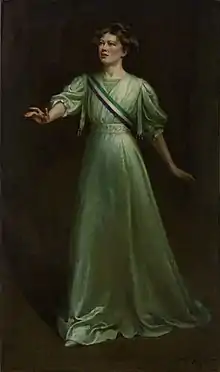 A portrait she made of Christabel Pankhurst was bought by the leading suffragette Una Duval after it was exhibited by the Women's Social and Political Union's art exhibition, held at the Prince's Ice Rink in Knightsbridge and funded by Clara Mordan, in May 1909.[4][5][6] Wright would later paint a portrait of Duval.