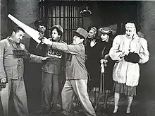 ![]() Leopold (far right) looks on in horror as Curly Howard gets a hair cut in the Three Stooges film In the Sweet Pie and Pie. | |