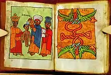 The Chester Beatty collection of 58 Ethiopian manuscripts includes illustrated gospel books, psalters and devotional works. Chester Beatty purchased some of the collection at auction in London in the 1930s and bought the rest in the 1950s and later.[20] The manuscripts were studied and published by Cerulli in 1965.[21]