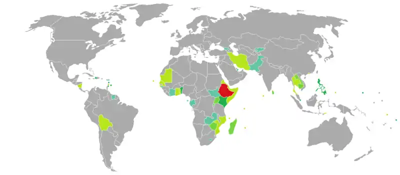 As of 1 January 2017, Ethiopian citizens had visa-free or visa on arrival access to 37 countries and territories, ranking the Ethiopian passport 96th in terms of travel freedom (tied with Kosovan, Lebanese and South Sudanese passports) according to the Henley visa restrictions index.[3]