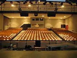 The Music and Musical Theatre Departments conduct three performances each year: the December holiday concert, "Festive Celebration", a spring music showcase "Opus", and the culminating production of the annual Musical.
