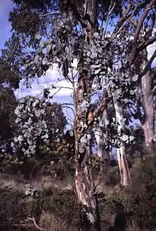 Eucalyptus canobolensis is only known from the upper slopes of Mount Canobolas where it grows in subalpine woodland.[5]